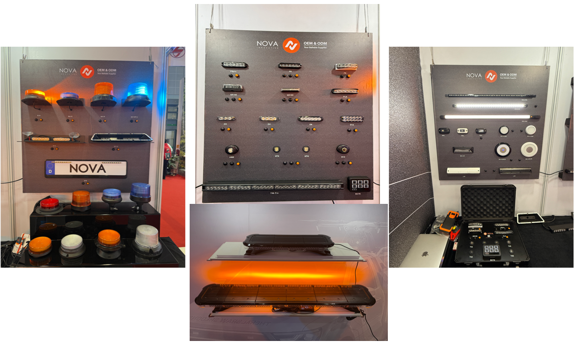 NOVA Vehicle mempamerkan produk lampu amaran kecemasan utamanya, termasuk: